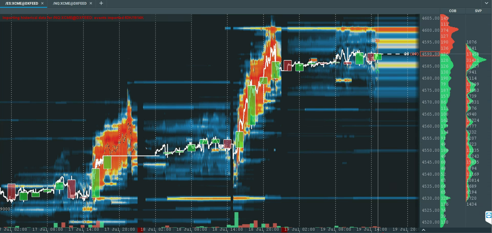 Přinášíme vám pohled na reálné čekající objednávky a zobchodovaný objem na futures trzích na 2 hlavní akciové indexy S&P 500 (US500). Kotace na futures kontraktech, které kopírují CFD instrumenty se mohou mírně lišit, ale úroveň čekajících objednávek lze graficky odhadnout téměř přesně.