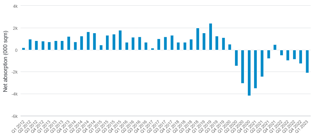 Čistá míra absorpce – měří plochu s novými pronájmy v porovnání s počtem budov, které jsou k dispozici nájemcům – je v Evropě za posledních sedm čtvrtletí rovněž kladná. Na začátku roku byla dokonce nejvyšší za více než deset let.