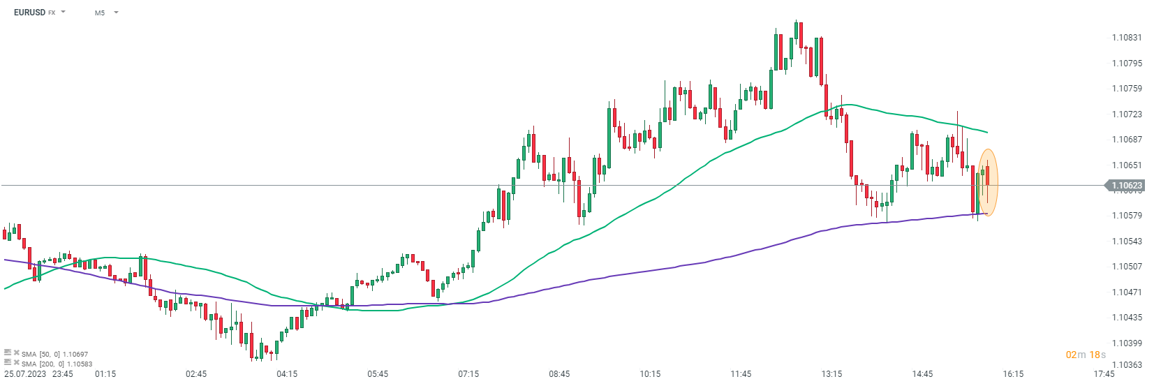 EURUSD v pětiminutovém intervalu. Zdroj: xStation5
