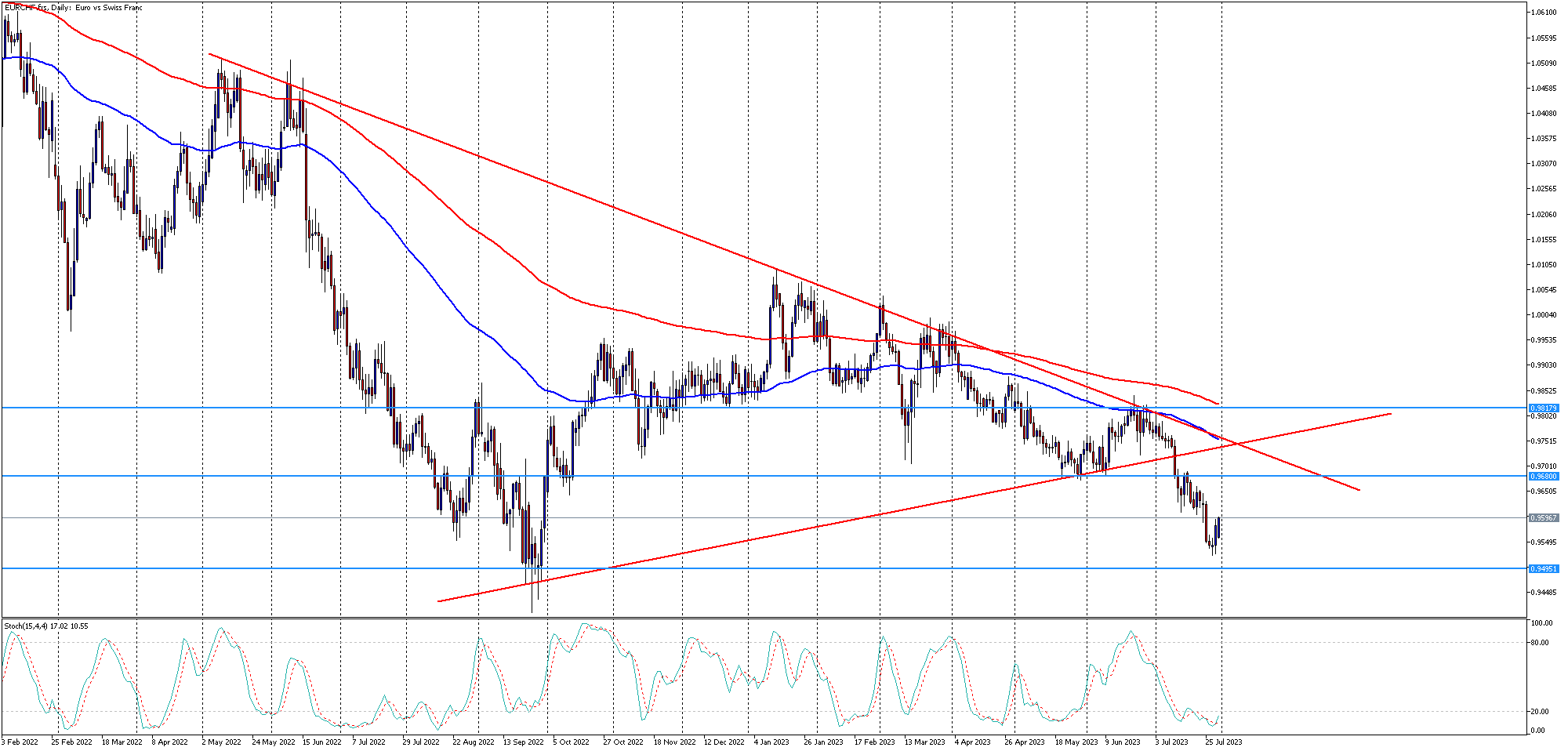 EUR/CHF se pomalu dostává z trojúhelníkové formace