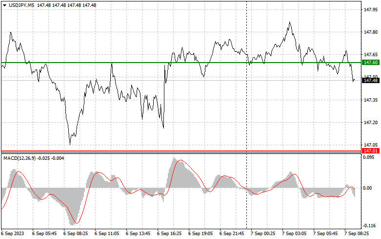 Nákup USD/JPY zvažte i po dvou po sobě jdoucích testech ceny 147,13, ale linie MACD by měla být v přeprodané oblasti, protože jen tak se trh obrátí k úrovním 147,72 a 148,41.