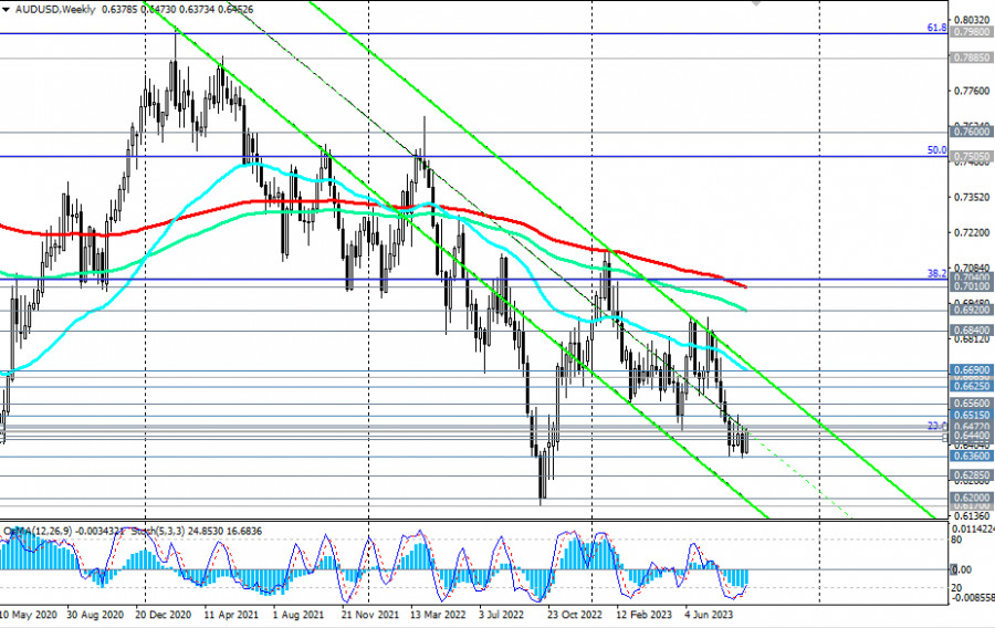 V případě dalšího poklesu se pár bude pohybovat uvnitř klesajícího kanálu v týdenním grafu směrem k jeho spodní hranici a úrovním 0,6200 a 0,6170 (minima z roku 2022) se střednědobými cíli na úrovních lokálního supportu 0,6360, 0,6300 a 0,6285.