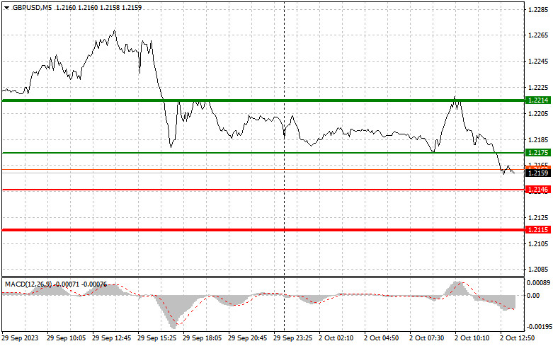 Libru lze nakupovat i po dvou po sobě jdoucích testech ceny 1,2146, ale linie MACD by měla být v přeprodané oblasti, protože pouze tak se trh obrátí k úrovním 1,2175 a 1,2214.