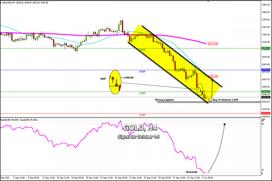 Obchodní signály pro zlato na 1.–5. října 2023: nakupujte při odrazu na 1 830 USD (měsíční support – přeprodáno)