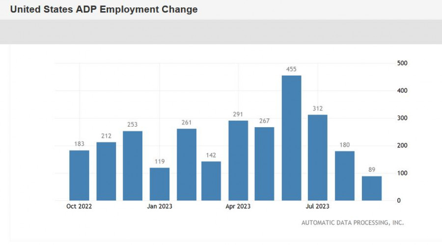 Stojí za zmínku, že předběžné prognózy týkající se oficiálních údajů mají takříkajíc "středně optimistický" charakter. Míra nezaměstnanosti se má podle většiny odborníků v září snížit na 3,7 % (po neočekávaném srpnovém nárůstu na 3,8 %). Očekává se, že počet NFP vzroste o 168 000, což je slabý, ale nikoli katastrofický výsledek (například v červenci to bylo 157 000). Očekává se, že počet zaměstnanců soukromého sektoru vzroste o 160 tisíc. Pro srovnání, v červnu byla tato složka zprávy na 128 000; v červenci – 155 000; a v srpnu – 179 000.