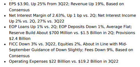 Banka prochází restrukturalizací, v rámci které dochází k odprodeji jejích zahraničních divizí spotřebitelského bankovnictví. Trh bude čekat na komentáře generální ředitelky Jane Fraser k probíhající restrukturalizaci a (možná) možnému snižování počtu pracovních míst. Očekává se, že rezervy na ztráty z úvěrů ve třetím čtvrtletí vzrostou o 9 %. Wall Street očekává, že úvěrové portfolio a úrokové výnosy Citigroup budou ve třetím čtvrtletí těžit z expozice vůči kreditním kartám a normalizace dynamiky tohoto odvětví. Wall Street očekává, že náklady banky se mezičtvrtletně i meziročně zvýší (13,8 mld. USD oproti 12,7 mld. USD ve 3Q 2022), ale Citi je stále na dobré cestě splnit svůj roční výhled nákladů ve výši maximálně 54 miliard USD (bez vlivu FDIC).