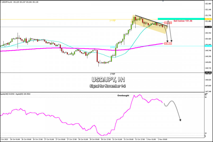 Obchodní signály pro pár USD/JPY na 1.–2. listopadu 2023: prodávejte pod úrovní 151,56 (Murray +1/8 – 21 SMA)