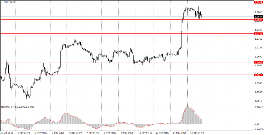 Obchodní plán pro pár EUR/USD na 16. listopadu. Jednoduché tipy pro začátečníky