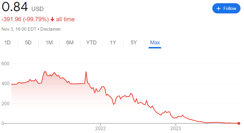 Nedávno se společnost WeWork rozhodla neprovádět splátky úroků z prioritních dluhopisů splatných v roce 2025, přestože na to měla potřebné prostředky, a již v srpnu varovala před možným bankrotem. Cena jedné akcie dosáhla historického minima 1,18 USD, což znamenalo 96procentní ztrátu hodnoty v tomto roce, a dále klesala. Vzhledem k tomu, že 92 procent věřitelů nesouhlasilo s možností restrukturalizace, společnost WeWork nakonec v pondělí 6. listopadu 2023 definitivně vyhlásila bankrot.