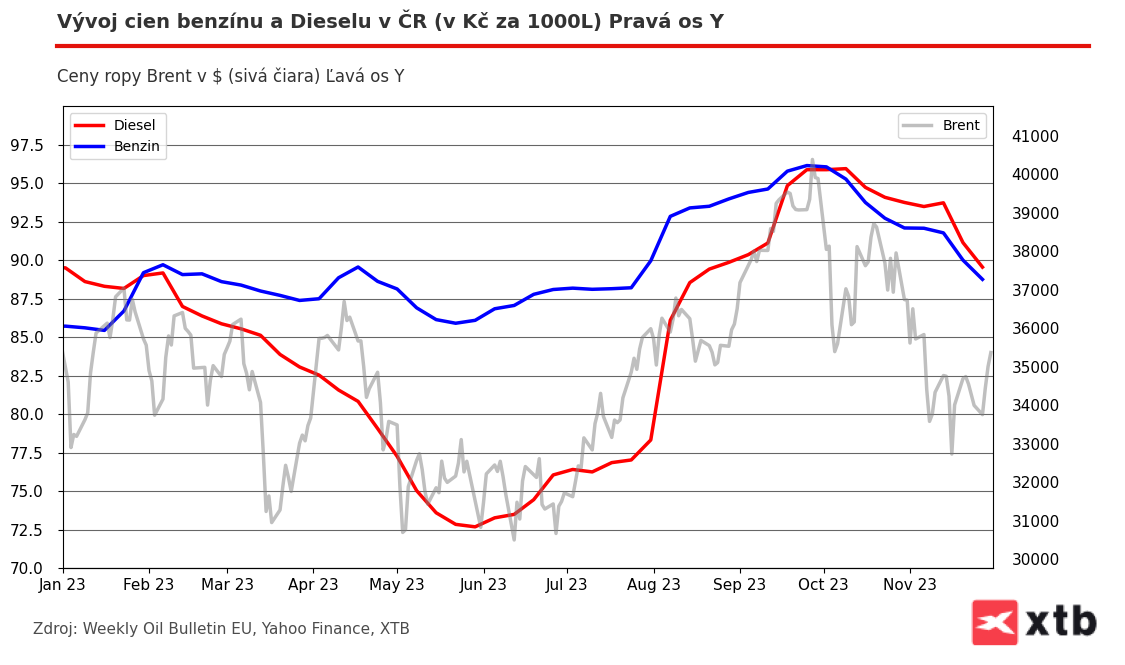 Zdroj: Weekly Oil Bulletin EU, Yahoo Finance, XTB.