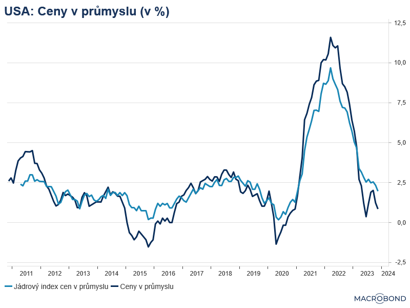 Ceny v průmyslu v dubnu rostly o 2,3 % meziročně oproti 2,7 % v březnu. Trhy očekávaly růst o 2,5 % meziročně. Jádrový index cen v průmyslu vzrostl o 3,2 % meziročně oproti 3,4 % v březnu, přičemž trhy očekávaly růst o 3,3 % meziročně. -