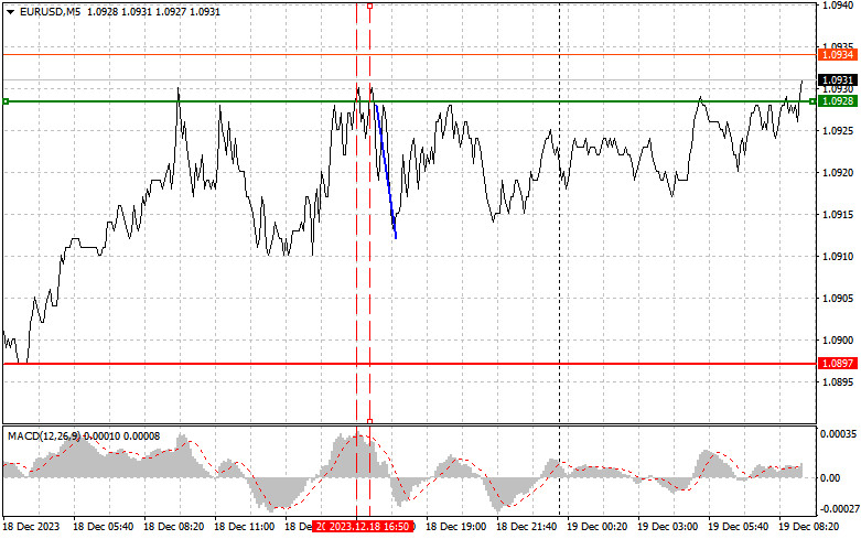 Nakupujte, když euro dosáhne úrovně 1,0936 (zelená linie v grafu), a zisk vybírejte na ceně 1,0966. K růstu dojde, pokud údaje z eurozóny ukážou další růst inflace.