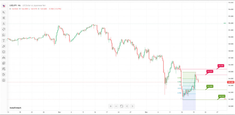 USD/JPY, H4 | Obrat na Fibonacciho retracementu 50,0%