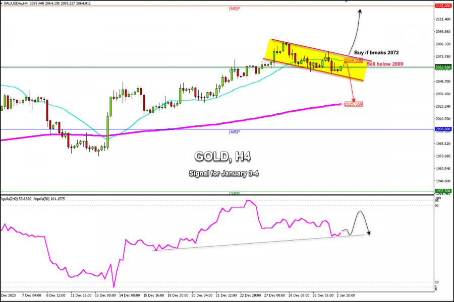 Obchodní signál pro ZLATO (XAU/USD) na 3.–4. ledna 2024: nakupujte nad 2 062 USD (Murray 5/8 – 21 SMA)