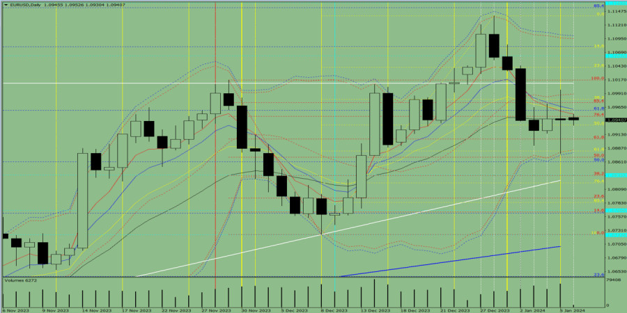 Analýza indikátorů pro pár EUR/USD na 8. ledna 2024