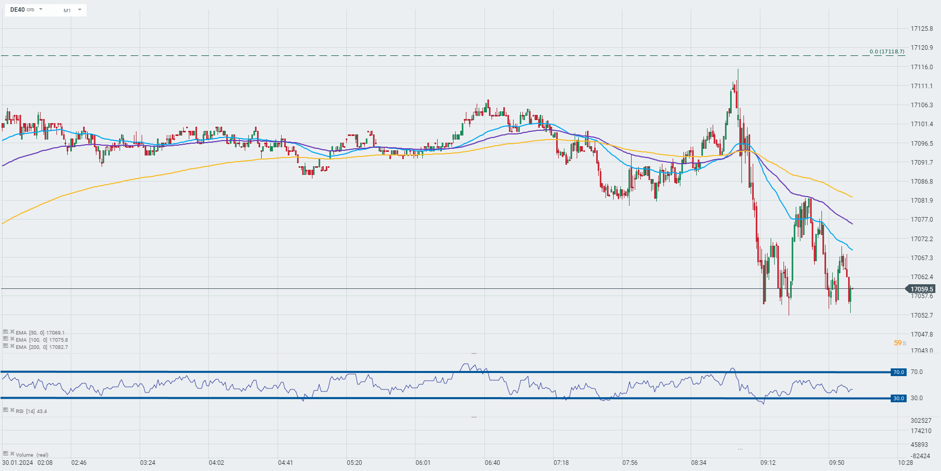 DE40 se krátce po zveřejnění údajů o HDP obchoduje na minimu seance. Zdroj: xStation