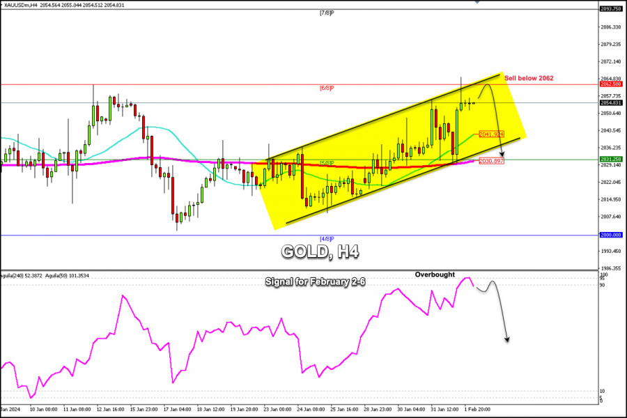 Obchodní signály pro ZLATO (XAU/USD) na 2.–6. února 2024: prodej pod 2 062 USD (Murray 6/8 – 200 EMA)