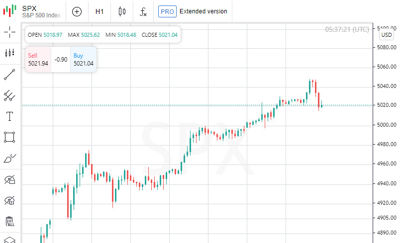 Index S&P 500 po dosažení nového intradenního rekordu mírně klesl. Minulý týden poprvé v historii překonal hranici 5 000 bodů. Globální akciový index MSCI zůstal beze změny, když předtím dosáhl nejvyšší úrovně od ledna 2022.