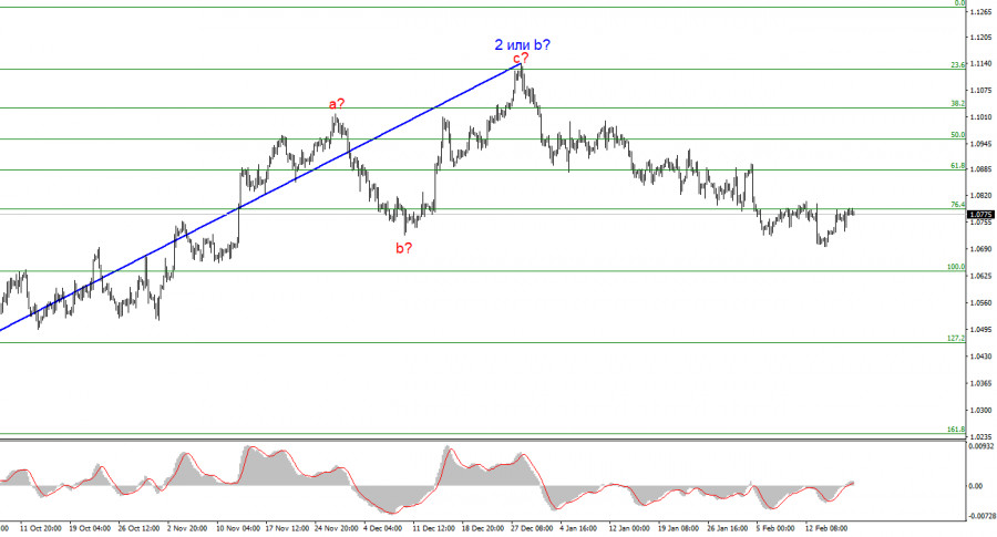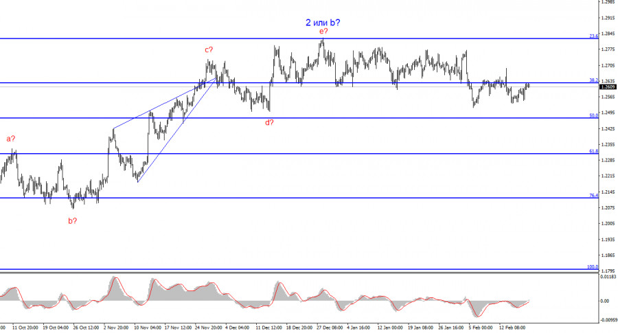 Vlnový pattern na páru GBP/USD naznačuje pokles. V tuto chvíli zvažuji prodej instrumentu s cíli pod úrovní 1,2039, protože vlna 2 neboli B nakonec skončí, stejně jako boční trend. Úspěšný pokus o průraz úrovně 1,2627 působil jako signál k prodeji. Další signál se vytvořil v podobě neúspěšného pokusu o průraz této úrovně zespodu nahoru. V tuto chvíli jsem si poměrně jistý poklesem instrumentu minimálně k úrovni 1,2468, což by byl pro dolar už významný úspěch, protože poptávka po něm zůstává velmi nízká.