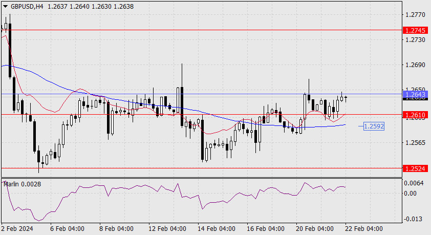 Oscilátor Marlin je stabilní v rostoucím teritoriu a pokračuje v dalším růstu. Obrat pod 1,2610 bude znamením slabosti býků, a to navzdory všem pozitivním signálům, které obdržel.