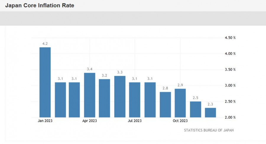 Podle předběžných prognóz se celkový index spotřebitelských cen v Japonsku sníží na 2,1 %. Ukazatel vytrvale klesá již dva měsíce po sobě a očekává se, že leden bude třetím měsícem v této řadě. Očekává se, že index spotřebitelských cen bez započtení cen čerstvých potravin rovněž vykáže klesající trend a okamžitě se sníží na 1,9 % (nejnižší hodnota od dubna 2022). Pro srovnání, v říjnu tento ukazatel dosahoval 2,9 %, ale v listopadu (2,5 %) a prosinci (2,3 %) prudce poklesl.