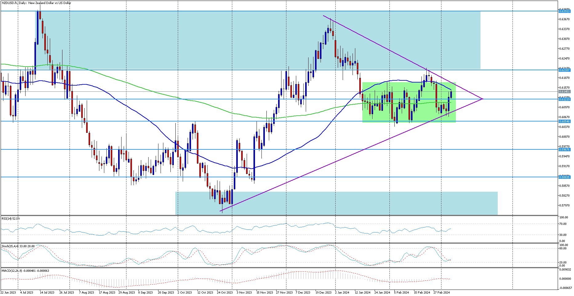 NZD/USD se nadále pohybuje směrem dolu. Zdá se, že oblast 0,6036-0,6092 vystavila dočasnou stopku korekci, která trvá od maxima z prosince 2023. Účastníci trhu by také mohli být v režimu vyčkávání na některé klíčové události na trhu, které se v příštích 10 dnech odehrají, zejména na rozhodnutí Fedu příští týden. Momentové ukazatele zůstávají většinou smíšené. Konkrétně se ukazatel RSI obchoduje mírně pod svým středem. -