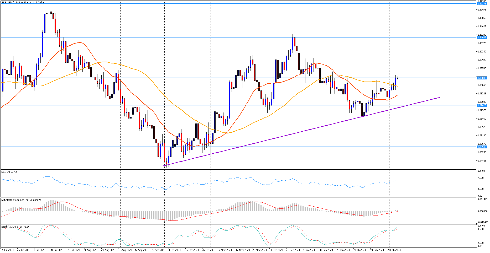 EURUSD se během Powellova prohlášení vyšplhalo nad 1,09