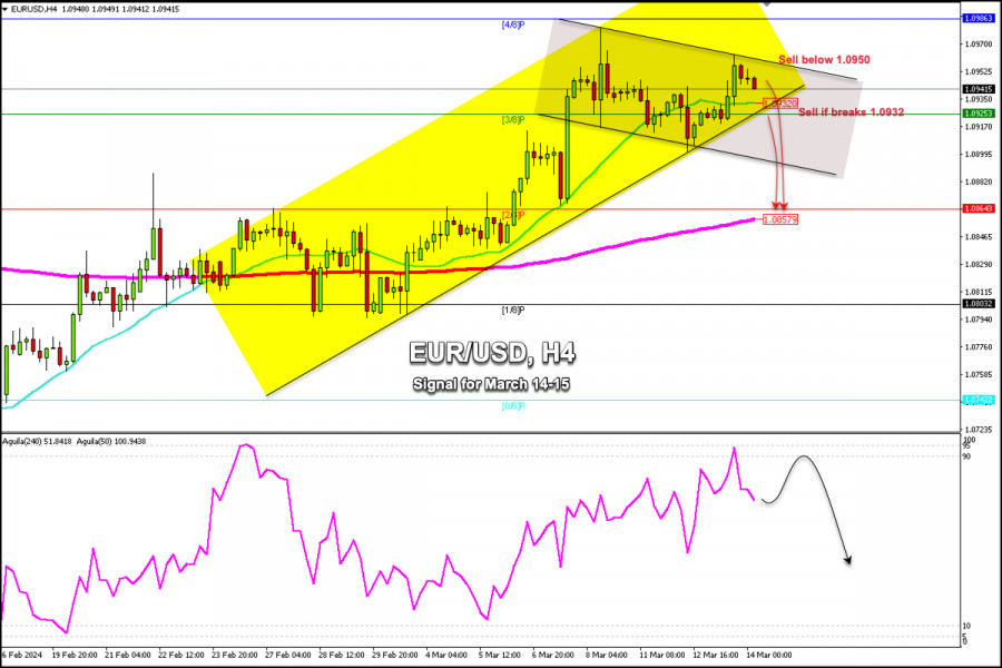 Obchodní signály pro EUR/USD na 14.–15. března 2024: prodávejte pod 1,0950 (3/8 Murray – 21 SMA)