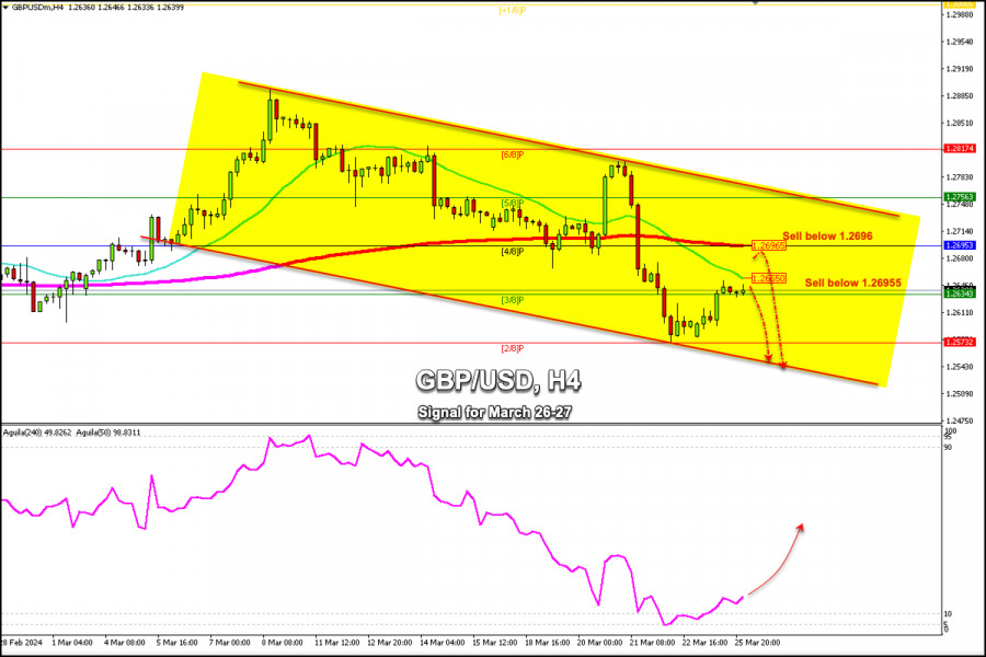 Obchodní signály pro pár GBP/USD na 26.–27. března 2024: prodávejte pod úrovní 1,2696 (Murray 4/8 – 21 SMA)