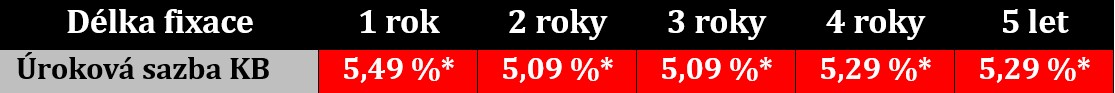 Úrokové sazby hypoték KB platné od 11. dubna 2024