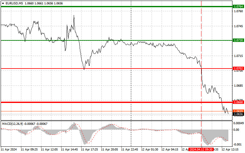Další pokles byl omezen, protože úroveň 1,0702 byla otestována v době prudkého poklesu linie MACD od nuly.
