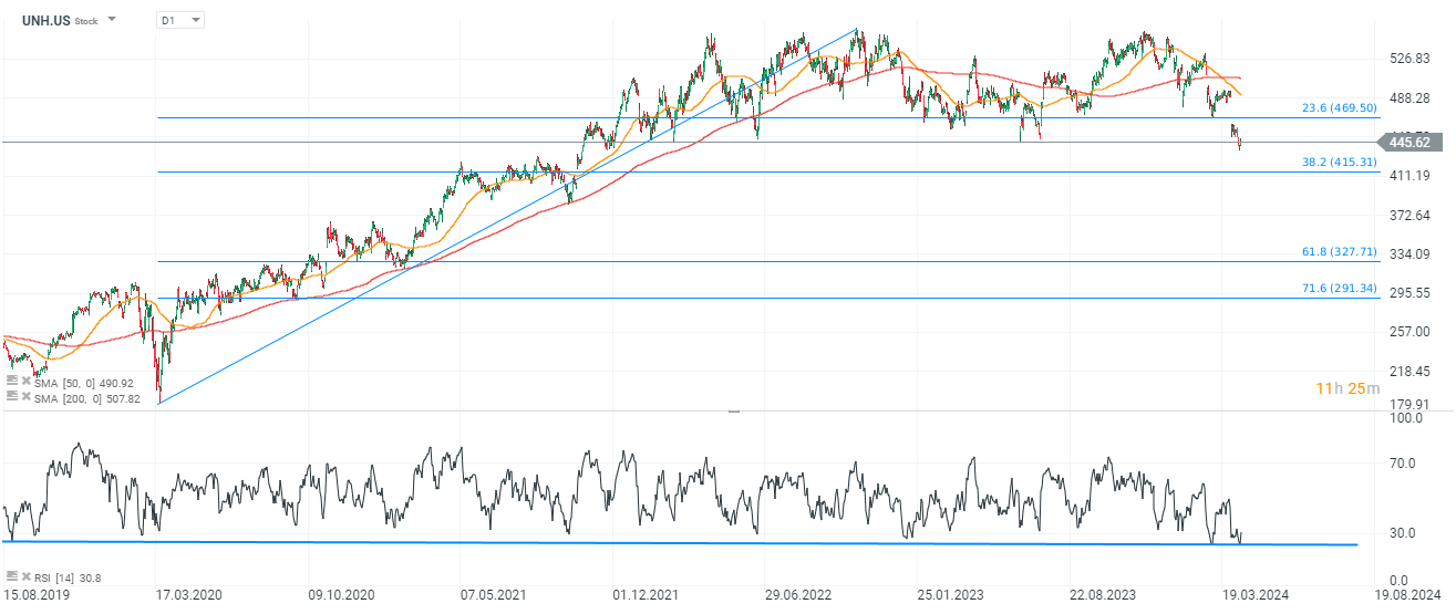 UnitedHealth Group (UNH.US) je dnes nejhorší akcií z indexu S&P 500 a v průběhu dne klesá přibližně o 5 %. Pokles přichází poté, co agentura Bloomberg informovala, že americké ministerstvo spravedlnosti zahájilo antimonopolní vyšetřování společnosti. -