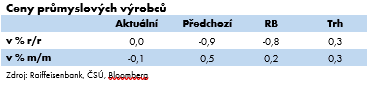 Ceny průmyslových výrobců se i nadále vyvíjí velmi příznivě a očekáváme podobný trend i v dalších měsících. Za celý letošní rok by mohly ceny v průmyslu vzrůst v průměru o 1 %. Rizikem je ovšem geopolitický vývoj ve světě, kdy napětí na Blízkém východě nepolevuje. To může vyústit v rostoucí cenu ropy, což v kombinaci se slabší korunou vytváří potenciální inflační tlaky.