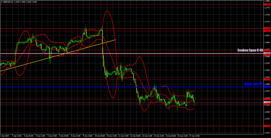 Velká Británie včera zveřejnila zprávu o inflaci za březen. Těžko říct, jestli obchodníky potěšila, nebo zklamala. Soudě podle jejich reakce je potěšila, ale jen nakrátko. Libře se podařilo vzrůst o 50 pipů, protože inflace klesla méně, než se předpokládalo. Obecně to ale na situaci nic nemění. Inflace ve Spojeném království je už teď nižší než inflace v USA, což znamená, že Bank of England může začít se snižováním klíčové sazby rychleji než Federální rezervní systém. V důsledku toho má britská měna, jejíž pokles se už očekával, ještě víc důvodů k pohybu dolů. Trh nicméně – stejně jako dřív – nespěchá s prodejem liber za dolary. Možná, že BoE stále tajně intervenuje.