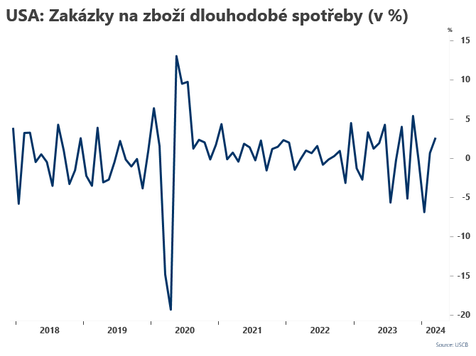 Zakázky na zboží dlouhodobé spotřeby vzrostly