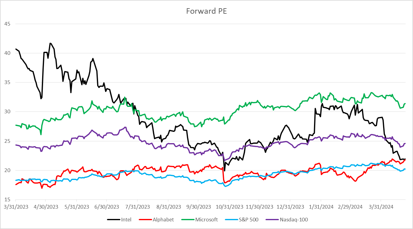 Dnes po skončení seance na Wall Street budou obchodníkům nabídnuty zprávy o výsledcích za 1. čtvrtletí 2024 od tří známých amerických technologických společností. Alphabet (GOOGL.US), Microsoft (MSFT.US) a Intel (INTC.US). Zprávy těchto tří společností by mohly pomoci utvářet sentiment vůči americkému technologickému sektoru. Obchodníci by však měli mít na paměti, že trhy jsou nepředvídatelné a překonání zisků nemusí znamenat růst cen akcií po zveřejnění výsledků - zklamání z výsledků společnosti Tesla poslalo akcie výrobce elektromobilů do vzduchu, zatímco společnost Meta Platforms se v předobchodní fázi propadá, přestože vykázala lepší než očekávané výsledky. Pojďme se krátce podívat na to, co trh očekává od společností Alphabet, Microsoft a Intel a na co se zaměřit.
