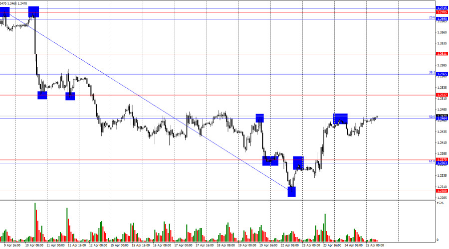 GBP/USD. 25. dubna. Býci využívají slabé americké statistiky