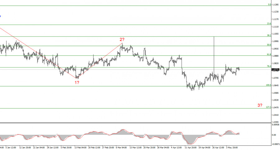 Euro navzdory vlnovým patternům a zpravodajskému pozadí pokračuje v růstu. Trh podle mého názoru nevěnuje dostatečnou pozornost zprávám, a proto se pár EUR/USD obchoduje zvláštně. Toto očividně nemůže mít dlouhého trvání a trh nemůže ustavičně ignorovat příchozí informace. Účastníci trhu se podle mě už smířili s tím, že Evropská centrální banka sníží sazbu v červnu a pak v průběhu roku ještě minimálně dvakrát. Zároveň lze těžko očekávat i dvě kola snížení sazeb Fedu. Předpokládám, že trh chápe, jak je to marné, a právě proto nakupuje euro. Je to prostá logika – vyhnat teď euro co nejvýš, aby se později prodalo na výhodném kurzu. Je to jen hypotéza, ale své právo na existenci má. -