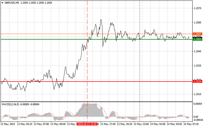 K otestování ceny 1,2553 došlo v době, kdy se ukazatel MACD již prudce posunul od nuly směrem nahoru, což ovlivnilo potenciál libry k růstu, ke kterému došlo odpoledne bez zvláštního důvodu. Dopoledne se díky absenci údajů ze Spojeného království podařilo na trhu zachovat rovnováhu a aktivnější byli býci, kteří zároveň dokázali absence údajů z USA využít. V důsledku toho přetrvává růstový trend, který by se dnes mohl vyvinout v další cenový skok. K tomu však pár GBP/USD potřebuje dobré údaje z britského trhu práce. Mezi dnešními plánovanými zprávami z Velké Británie jsou také údaje o počtu žádostí o podporu v nezaměstnanosti a o průměrném výdělku. Dobrá zpráva o průměrném výdělku v návaznosti na nedávné zprávy o nižší inflaci by byla dobrým impulsem k nákupu libry, stejně jako zpráva o nižší míře nezaměstnanosti ve Spojeném království. Pokud jde o intradenní strategii, budu se spoléhat spíše na realizaci scénářů č. 1 a 2.