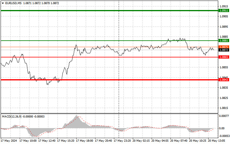 Testování cenové hladiny 1,0872 se shodovalo se zřetelným pohybem indikátoru MACD dolů od úrovně nula, což omezilo další potenciál páru klesat. Z tohoto důvodu jsem euro neprodával. Vzhledem k nízké volatilitě se nevytvořily žádné další vstupní body. Nedostatek ekonomických údajů ovlivnil objemy obchodů a situace bude nejspíš podobná i ve druhé polovině dne. Kromě projevů představitelů Federálního rezervního systému se během americké seance nic zajímavého nečeká, takže nejlepší je vsadit na další pokles páru EUR/USD a rostoucí tlak na něj. Případné komentáře Fedu o inflaci budou interpretovány ve prospěch nákupu dolaru. Co se týká intradenní strategie, plánuji jednat na základě realizace scénáře č. 1 a 2.