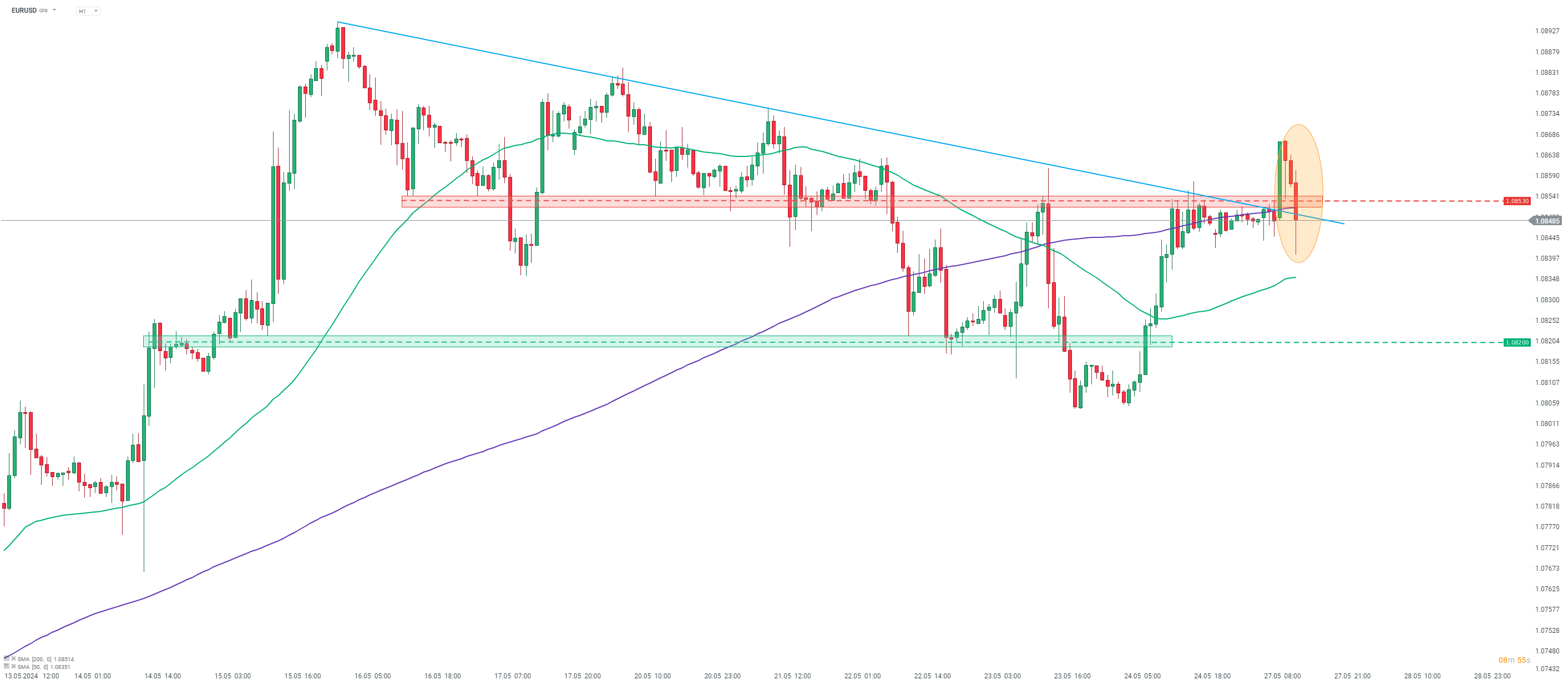 EURUSD se dnes obchoduje výše a dokonce se mu podařilo vyskočit nad oblast 1,0835, kde lze nalézt 200hodinový klouzavý průměr, krátkodobou trendovou linii a předchozí cenové reakce. Nicméně komentáře členů ECB, zejména Villeroye a Lanea v časném odpoledni, vedly k obratu, kdy pár klesl zpět pod výše uvedené úrovně odporu.