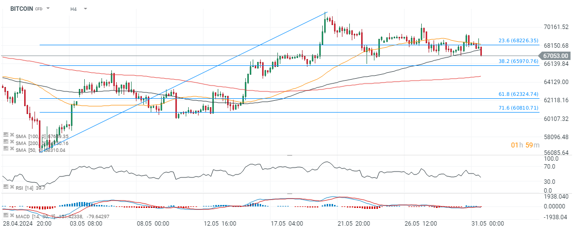 Slabší sentiment kolem rizikových aktiv je dnes patrný i na obchodování s bitcoinem, který bleskově smazal odraz po údajích o PCE, který ho vynesl téměř k 69 000 USD. Cena BTC se pohybuje kolem 67 000 USD a dnes se obchoduje o více než 2 % níže, zatímco ostatní projekty ztrácejí v rozmezí 3 - 5 %. Ethereum se obchoduje kolem 3700 dolarů a chová se dnes lépe, než největší kryptoměna - Bitcoin.