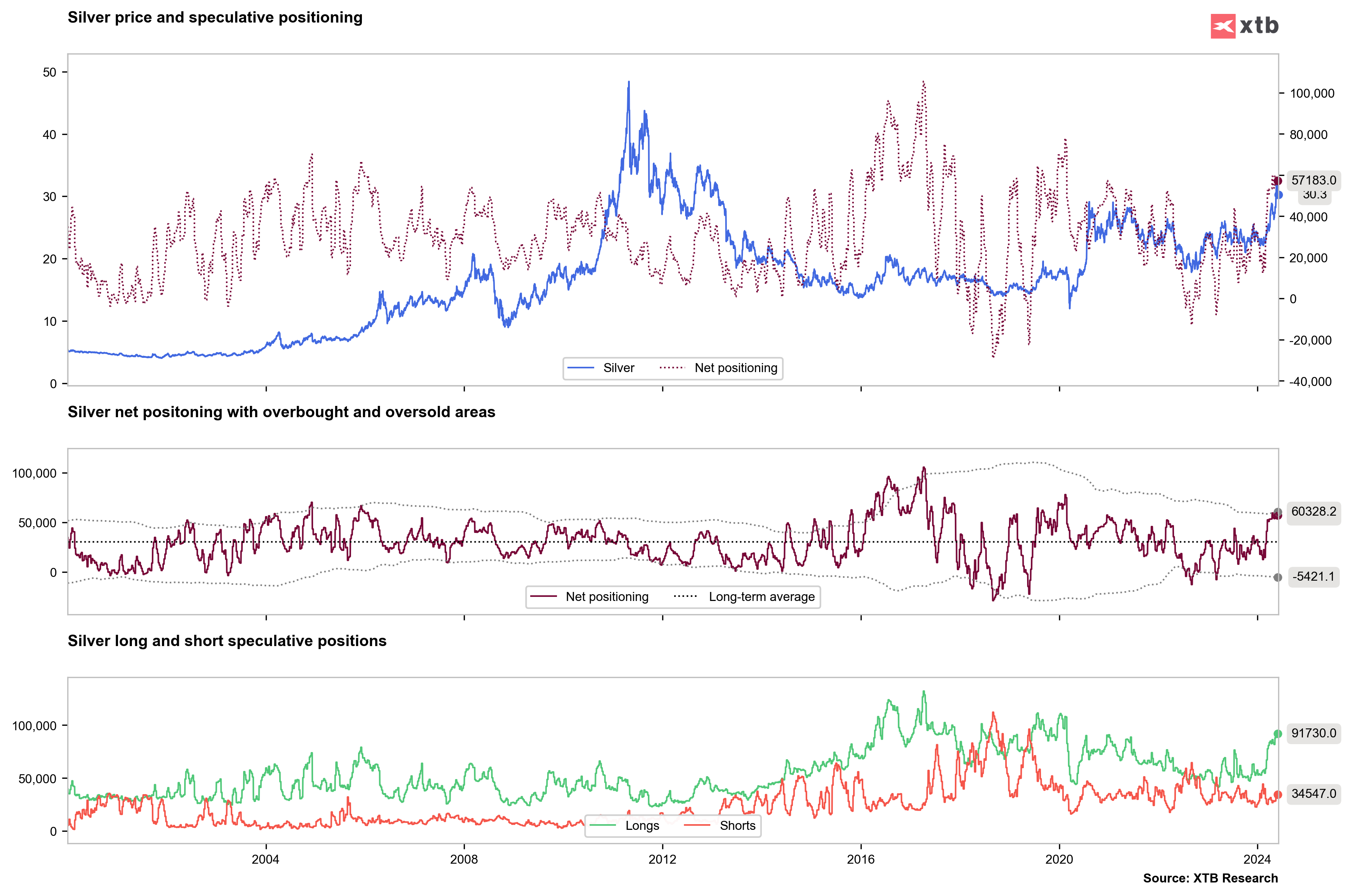 - Slabší údaje hlášené na obou stranách Atlantiku a zklamaná Čína vyvíjejí tlak na průmyslové kovy, včetně stříbra. A co víc, Federální rezervní systém je pravděpodobně stále ještě daleko od svých prvotřídních škrtů, a přestože šance na uvolnění politiky v roce 2024 v poslední době vzrostly, nepřichází to bez nákladů, což vidíme v pomalém zpomalující ekonomiku.
