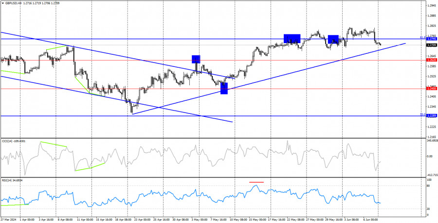 Informace zveřejněné v pátek byly pro dolar příznivé. Kromě zprávy Nonfarm Payrolls, která výrazně překonala očekávání obchodníků, se objevila ještě jedna zpráva podporující medvědy. Mzdy v USA v květnu vzrostly meziměsíčně o 0,4 % a meziročně o 4,1 %. V obou případech byla očekávání obchodníků překonána. Co tyto údaje znamenají? Mzdy rostou, rostou rychleji, než se očekávalo, a ve svém růstu zrychlují. Pokud mzdy rostou, znamená to, že spotřebitelé budou potenciálně utrácet více peněz, což povede k inflaci. Sekundární ukazatel mezd je tedy prakticky stejně důležitý jako Nonfarm Payrolls. Mzdy v USA rostou a s nimi může zrychlit i inflace, což popírá jakékoli vyhlídky na brzké uvolnění měnové politiky Fedu. Pokud jde o libru, býčí trend zůstává nepřerušen, ale vyhlídky medvědů se v pátek výrazně zlepšily.
