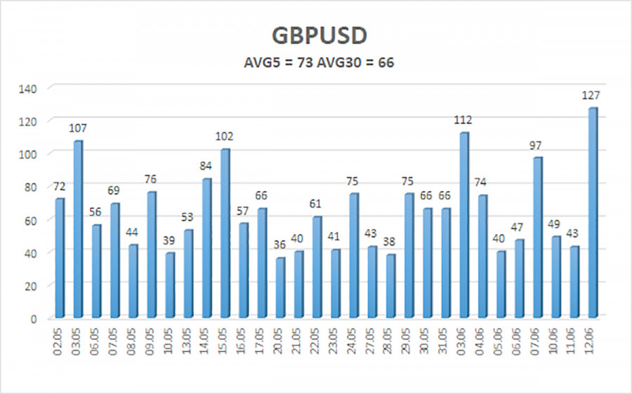 Přehled vývoje měnového páru GBP/USD dne 13. června. Libra s velkým potěšením navázala na své dřívější způsoby