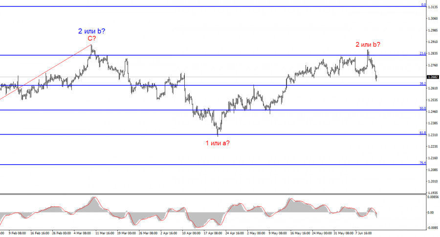 Na základě provedené analýzy EUR/USD jsem dospěl k závěru, že se formuje medvědí vlna. V blízké budoucnosti očekávám vytvoření sestupné vlny 3 nebo c s výrazným poklesem instrumentu. Uvažuji o krátkých pozicích s cíli poblíž hranice 1,0462. Vnitřní vlnová struktura vlny 3 nebo c může mít podobu korekční pětivlny, ale v takovém případě by měly kotace klesnout do oblasti 1,04.