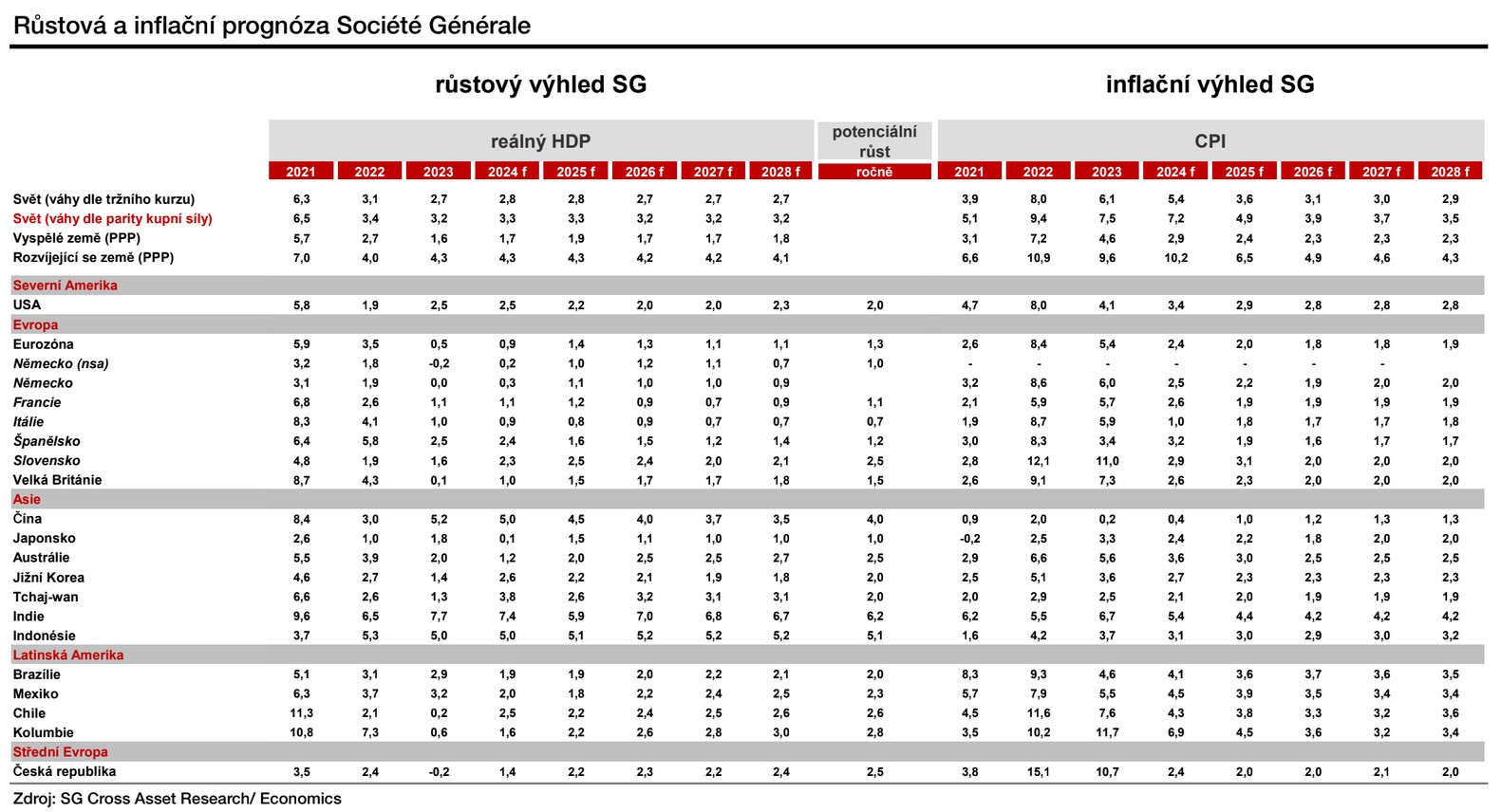 Máme za sebou téměř polovinu letošního roku. Vstupovali jsme do něj s určitými obavami, zejména pokud jde o růstovou výkonnost globálního hospodářství jako celku. Nyní již můžeme konstatovat, že světová ekonomika letos nezaznamená nějaký super výjimečný rok, i tak ale ekonomové Société Générale (SG) v aktuální prognóze globálního ekonomického vývoje očekávaný růst zvýšili o dvě desetiny na 3,3 %. Ve srovnání s prvními dvěma dekádami tohoto milénia to sice bude slabší dynamika, ale je třeba si uvědomit, že současný růst Číny, jako druhé největší ekonomiky světa, je nyní pouze na polovičních tempech předchozích dvou desetiletí. Nicméně právě pro letošek zlepšený výhled na Čínu je jedním z faktorů vzestupné revize růstu globální ekonomiky.