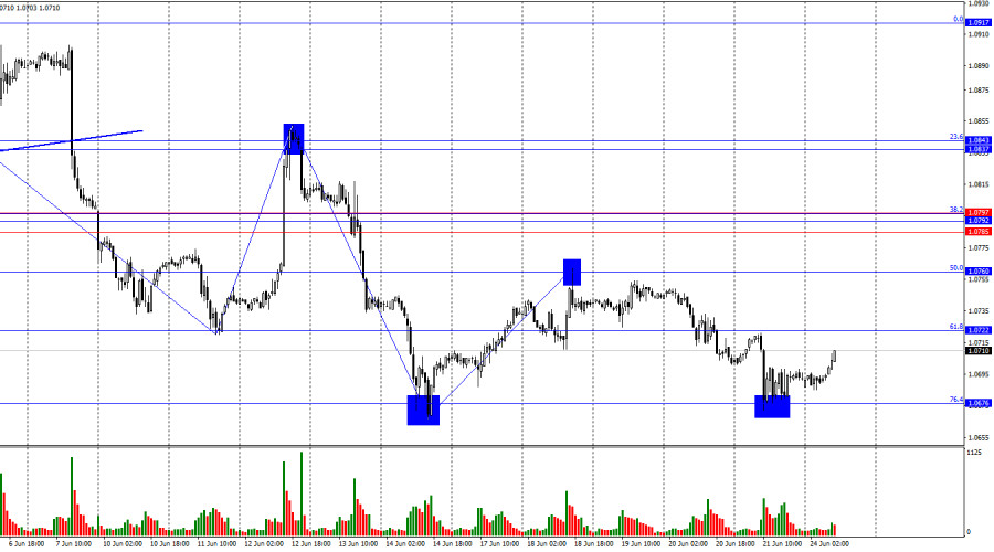 EUR/USD. 24. června. Pátek zůstal medvědům, ale v pondělí přešli do útoku býci.