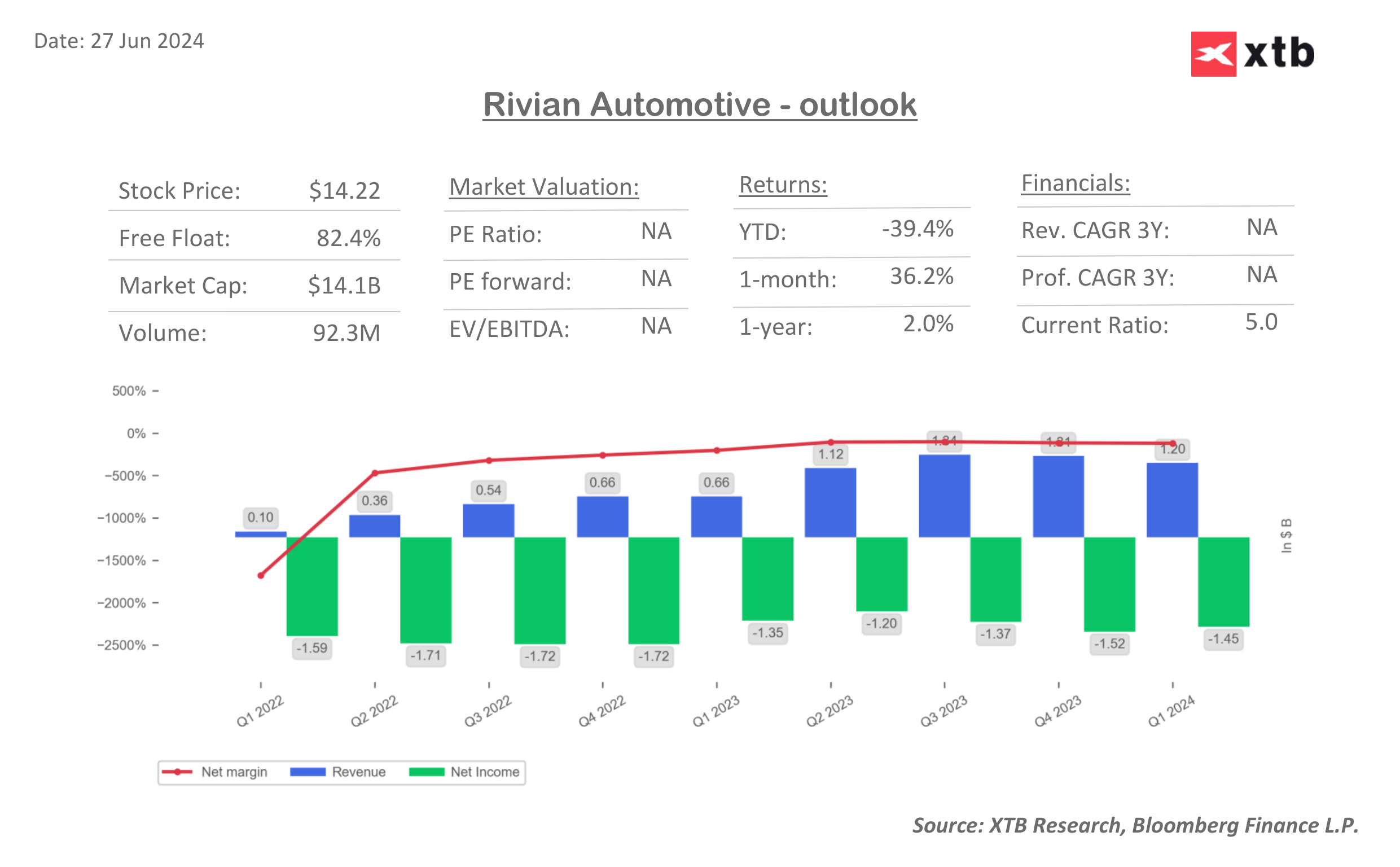 Prezentace společnosti byla trhem přijata velmi pozitivně, což částečně smazalo poklesy společnosti Rivian, která dnes ztratila -7 % a v současné době se obchoduje na úrovni pouze 2,7 % pod včerejší zavírací cenou.Zdroj: xStation