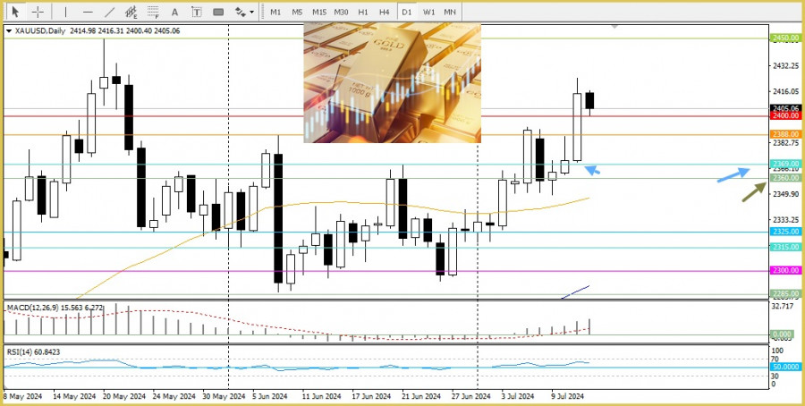 Na druhou stranu noční swingové maximum kolem 2 425 USD nyní slouží jako bezprostřední překážka, nad níž bude zlato opět usilovat o překonání historického maxima kolem 2 450 USD dosaženého v květnu.